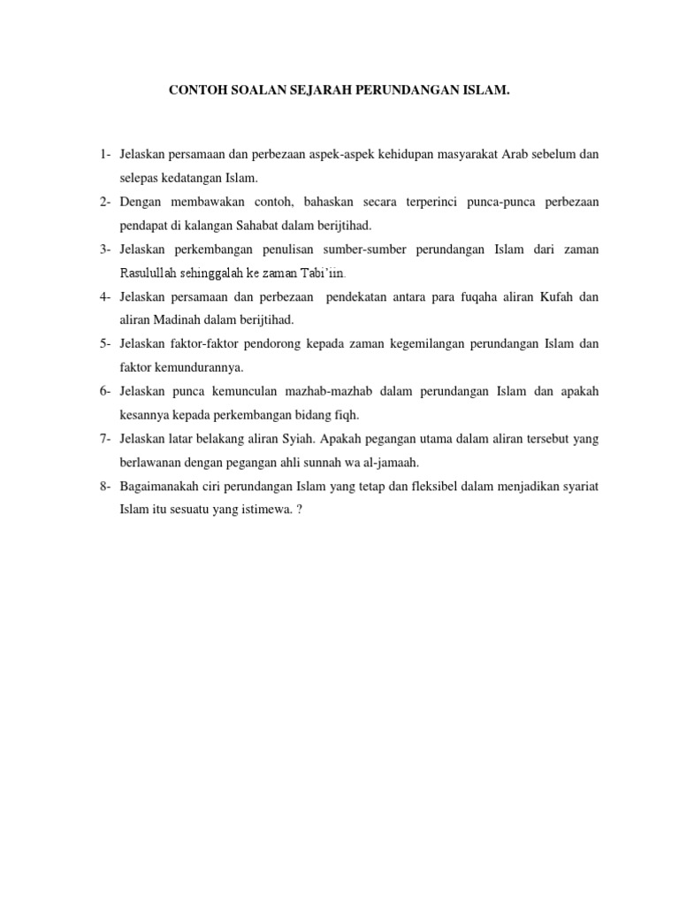 Contoh Soalan Sejarah Perundangan Islam Pdf