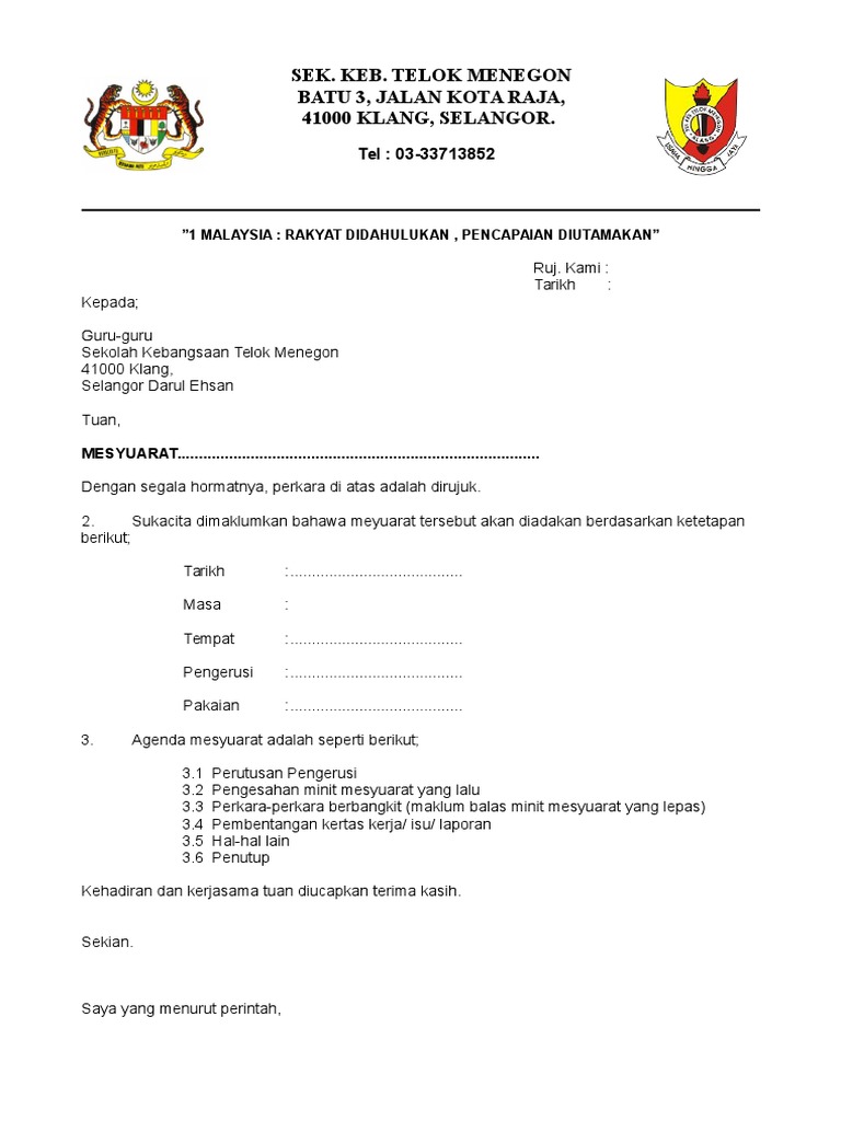 Contoh Surat Panggilan Mesyuarat Pdf
